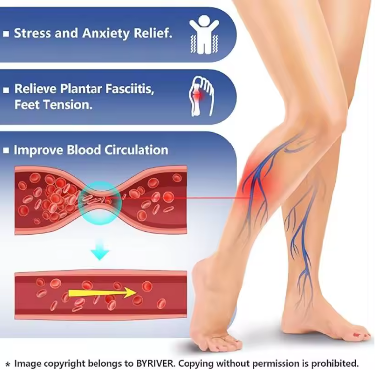With each step, foot massage slippers' 39 rotating massage beads automatically rotate 10 degrees, squeeze the acupoints and blood vessels, remove the attachments on the blood vessel walls, keep the blood vessels unblocked, and stimulate the regeneration of capillaries and nerve ending cells.